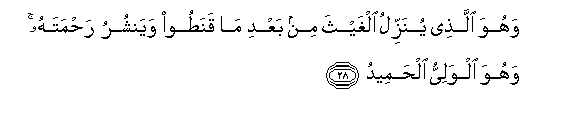 28. Wahuwa allathee yunazzilu alghaytha min baAAdi ma qanatoo wayanshuru rahmatahu wahuwa alwaliyyu alhameedu