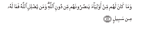 46. Wama kana lahum min awliyaa yansuroonahum min dooni Allahi waman yudlili Allahu fama lahu min sabeelin
