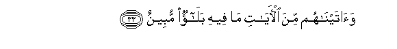 33. Waataynahum mina al-ayati ma feehi balaon mubeenun