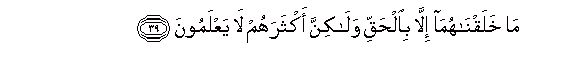 39. Ma khalaqnahuma illa bialhaqqi walakinna aktharahum la yaAAlamoona