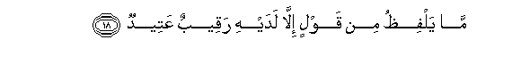 18. Ma yalfithu min qawlin illa ladayhi raqeebun AAateedun