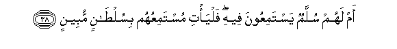38. Am lahum sullamun yastamiAAoona feehi falya/ti mustamiAAuhum bisultanin mubeenin