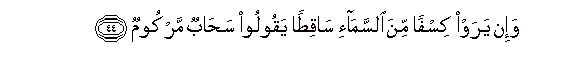 44. Wa-in yaraw kisfan mina alssama-i saqitan yaqooloo sahabun markoomun