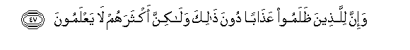 47. Wa-inna lillatheena thalamoo AAathaban doona thalika walakinna aktharahum la yaAAlamoona