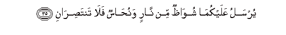 35. Yursalu AAalaykuma shuwathun min narin wanuhasun fala tantasirani