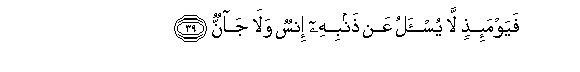 39. Fayawma-ithin la yus-alu AAan thanbihi insun wala jannun