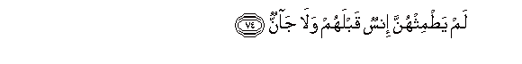 56. Feehinna qasiratu alttarfi lam yatmithhunna insun qablahum wala jannun