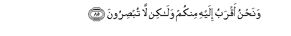 85. Wanahnu aqrabu ilayhi minkum walakin la tubsiroona