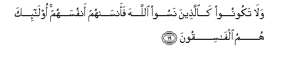 19. Wala takoonoo kaallatheena nasoo Allaha faansahum anfusahum ola-ika humu alfasiqoona