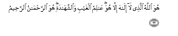 22. Huwa Allahu allathee la ilaha illa huwa AAalimu alghaybi waalshshahadati huwa alrrahmanu alrraheemu