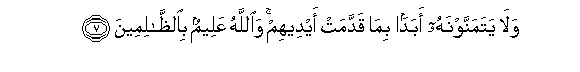 7. Wala yatamannawnahu abadan bima qaddamat aydeehim waAllahu AAaleemun bialththalimeena