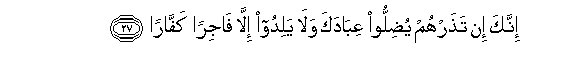 27. Innaka in tatharhum yudilloo AAibadaka wala yalidoo illa fajiran kaffaran