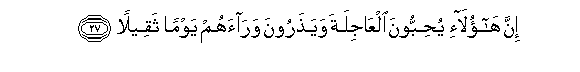 27. Inna haola-i yuhibboona alAAajilata wayatharoona waraahum yawman thaqeelan