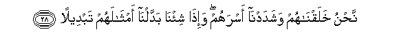 28. Nahnu khalaqnahum washadadna asrahum wa-itha shi/na baddalna amthalahum tabdeelan
