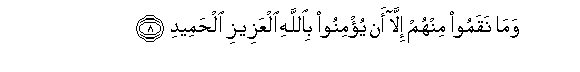 8. Wama naqamoo minhum illa an yu/minoo biAllahi alAAazeezi alhameedi