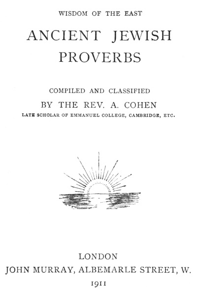 Ancient Jewish Proverbs, by Abraham Cohen, [1911], at sacred-texts.com
