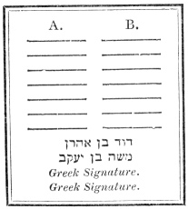 § 6. When two Gittin are written by the side of each other [on the same page], and they are undersigned by two witnesses [who sign] in Hebrew, underneath each other, and it is further signed by two other witnesses, who sign in Greek, also underneath each other, then, that Get only is valid to which the first witnesses are read 3