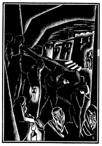 It was getting chilly. The Rabbi covered himself with many wraps. The pupils, too, dressed themselves warmly. The Rabbi got into the coffin and it was locked. The students, three at each side and one at each end, carried the coffin. About fourteen walked ahead carrying lanterns to light the way, and so they passed through the city. Not a person could be seen or heard. Not even a dog barked. Neither the moon nor the stars were out.
