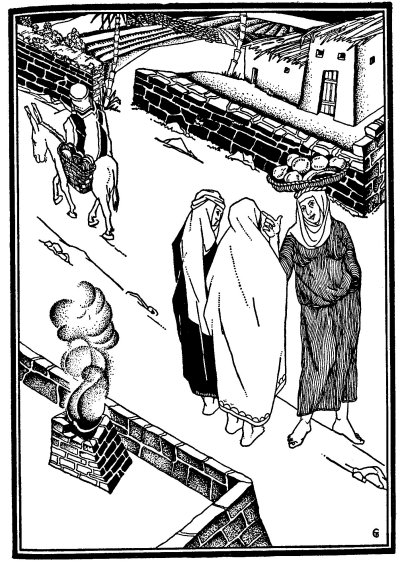 "The Rabbi's wife has nothing in her oven. What is all that smoke about? I must go in to see what she is burning in her oven." So the wicked neighbor threw her shawl over her shoulders and walked across to the Rabbi's house. She knocked at the door and waited a while. The Rabbi's wife, however, was ashamed to meet her. Therefore, instead of answering the knock, she ran into the next room. Again the wicked neighbor knocked at the door.