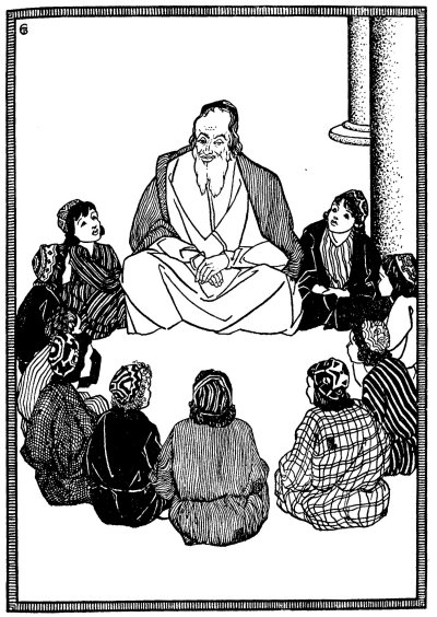RABBI MEIR was very, very bright. So bright was he, that they called him "Light." (You know "Meir" in Hebrew means "giver of light.") Meir made everything clear to his big pupils, and he made his little pupils bright and happy. Meir liked little children even more than any of the other rabbis did. One day, when a strong wind was blowing outside, many children came into the large synagogue. Rabbi Meir sat down and they formed a circle about him. They stopped all their talking. They didn't even whisper. "Oh, why doesn't he begin?" they wondered. "And why does Rabbi Meir look so sad?"