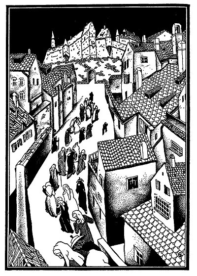 The crusaders ran from house to house and from synagogue to synagogue. Furious because they found no one, they determined to destroy everything belonging to the Jews. First they tore the holy books and the Torah; then they set fire to the houses and synagogues. Still their anger was unsatisfied. And so they stormed the bishop's castle, crying madly: "Hand over those infidels! If they want to live they must become Christians."