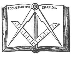 ![]() COMPASSES, PLACED IN A LODGE OF MASTER MASONS, ''BOTH POINTS ELEVATED ABOVE THE SQUARE,'' (See Note B, Appendix.) |