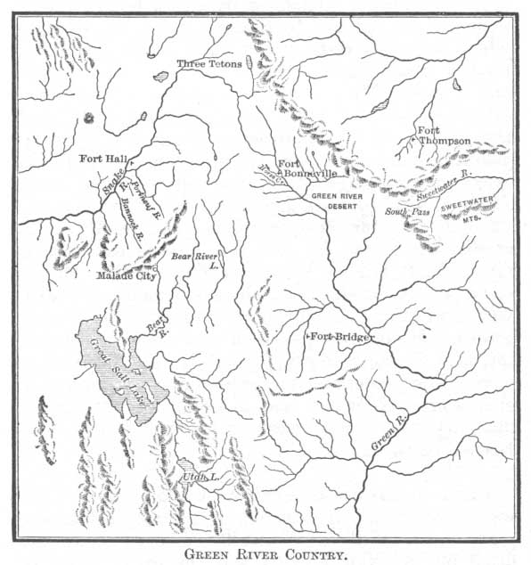 While the party were slowly descending Bear River four of them rode over to Fort Hall to obtain if possible a "pilot to conduct us to the gap in the California Mountains, or at least to the head of Mary's River," and to make inquiries of Mr Grant, then in charge. No guide could be found, and Grant was not able greatly to enlighten them. The fur-trader could have told them much concerning the route to Oregon, but this way to California as an emigrant road had hardly yet been thought of.