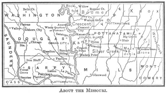On each side of the hills where now stands Council Bluffs could be seen the white canvas tents of a Mormon encampment, from which arose at sunrise the smoke of hundreds of fires. After the morning meal, the men employed themselves in tending herds, in planting grain and vegetables, or in building houses for winter. Many of them were excellent craftsmen, and could fell a tree, and split its trunk into boards, scantling, rails, posts, or whatever were needed, as