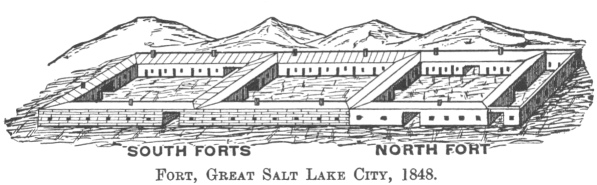 At the time of Parley P. Pratt's arrival, the city of Great Salt Lake consisted of a fort enclosing a block of ten acres, the walls of part of the buildings being of adobes and logs. There were also some tents. 7 As additional companies came in, they extended