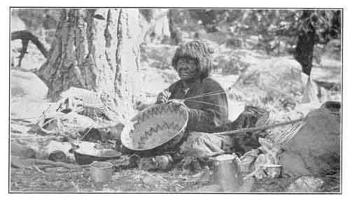 These Indians believe that everything on earth, both natural and artificial, is endowed with an immortal spirit, which is indestructible, and that whatever personal property or precious gifts are burned, either with the body or in later years for the departed friend's benefit, will be received and made use of in the spirit world. In recent years the Yosemites and other remnants of tribes closely associated with them, have adopted the custom of the white people, and bury their dead. The fine, expensive blankets, and most beautifully worked baskets, which have been kept sacredly in hiding for many years, to be buried with the owner, are now cut into small fragments before being deposited in the ground, for fear some white person will desecrate the grave by digging them up and carrying them away.