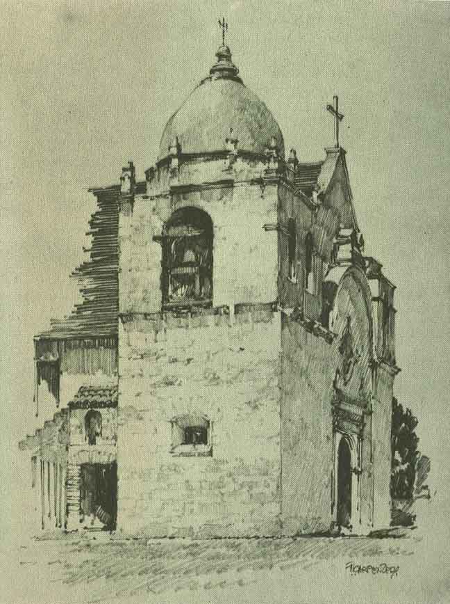 HIS, the second of the Mission establishments, was founded in 1770 by Father Serra and became his headquarters during his life in California. His body was buried within the sanctuary of the church that was erected there during the last year of his life. Annual pilgrimages by devout and patriotic Californians are made to it. The Mission is popularly known as "Carmel" and is situated on the little bay of that name six miles distant from the city of Monterey.