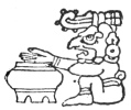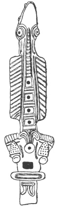 The other cuts show a musical Corn Festival as pictured in the Dresden Codex; a pax or Mexican huehuetl, to be beaten with the flat palms; a clay figurine of a dancer, from Isla Jaina, off the west coast; a deity seated on the earth, blowing a pipe (this and the pax from the Madrid Codex); a clay pipe in the form of a lizard.
