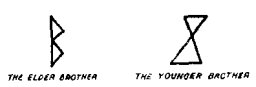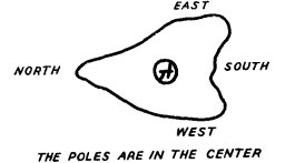 The Elder Brother went to the East and returned. All was well in the East. "There are no more monsters there," he said. And he went to the South and returned. "All is well in the South," he said. Then he went to the West and came back to his home and said: "There are no more monsters in the West. All is well towards the West." Last he went North and he came back from the North and said: "All is well in the North. Mother, Grandmother, Grandfather, there is no longer danger on earth. All is well to the ends of the earth."