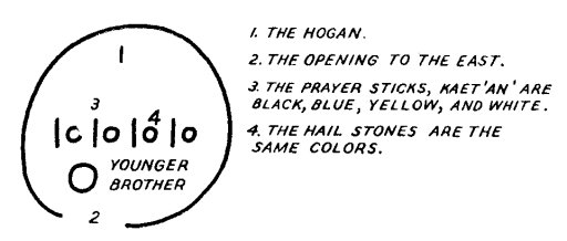 Recorder's note: The Arrow Ceremony, with its chants and sand paintings, comes here. Certain medicine men know this ceremony.]