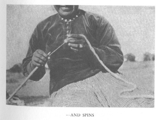 Atlnaba has executed in her weaving every detail of this complicated picture; she has omitted no outline, not a feather of a variegated bird. I watch her today even as I watched her the first day I saw her, with increasing amazement at her dexterity. She has woven the black border from the top down and now has about a thumb-joint length of the background to work in from the bottom. It takes longer to put in this last portion than to do any similar piece of the weaving of the entire blanket. I cannot stay until she has it finished, but it is not because I am bored. The movements of her clever fingers are a source of constant admiration to me, and I am never weary of watching them.