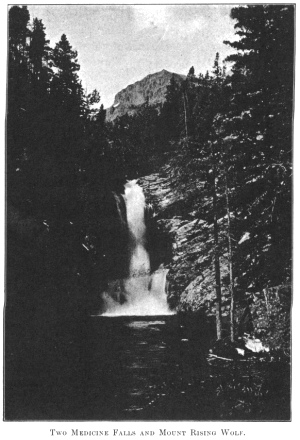 TWO MEDICINE FALLS AND MOUNT RISING WOLF.