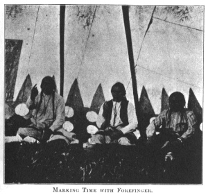 his body to and fro and marking time with raised finger, explaining to me that the Beaver Chief made this sign when giving instruction to Akaiyan, the founder of the Beaver Medicine.
