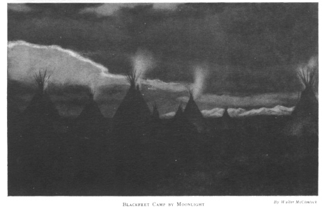 The Sun had set on the last day of his Sun-dance, when Mad Wolf, the greatest orator of the Blackfeet, arose to make a farewell talk. A deep stillness fell over the assembled people as the venerable chief, with hand upraised to command attention, stood before them. He spoke with a strong full voice, saying: