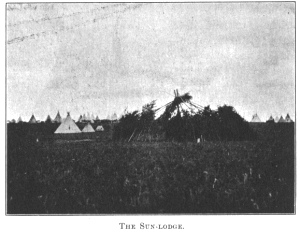 The Indians surrounded and crowded into the Sun-lodge in such numbers that it was almost impossible for more to enter, or for those that were within to withdraw. Seats were reserved for the lodge-giver with