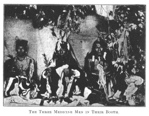 THE THREE MEDICINE MEN IN THEIR BOOTH.