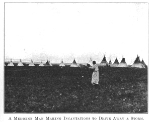 The medicine men were believed to have power over the weather, and at the time of the Sun-dance were expected to drive away all storms. The following incident illustrates the extraordinary skill with which they acquire and maintain a reputation with the tribe for supernatural power.