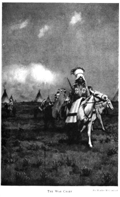 [paragraph continues] Running Wolf to hold them aloft when they entered camp, and to cry out, 'My name is Running Wolf. I am the youngest of the war-party, but I was the only one to kill a Snake Indian. Behold! here is his scalp.' Then they marched around the camp, shooting their rifles in the air, and singing the song of victory, 'We have hair.' Many years afterwards the Blackfeet were told by the Snakes, that the man my father killed was also the son of their head chief, and that his name was Running Wolf.