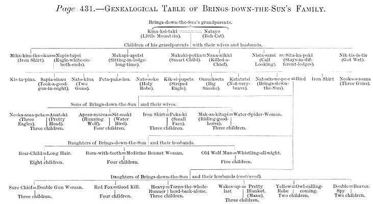Page 431. Genealogical Table of Brings-down-the-Sun's Family