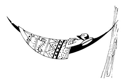 There he saw a hammock, the one in which the owner of the house, now dead, used to steep. "So this is where he used to sleep. I guess I'll sleep here too." He lay down and closed his eyes. A moment later he opened them to see, seated all around him, a group of dead people dressed in mourning and seated about a coffin.