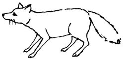 "No, wait here and I will bring you a really good meal of chicken. They are cooking it over there." Rabbit ran off toward the monte and Coyote happily waited, singing in anticipation of a fine meal. He waited a long time. At last he became angry and followed the tracks of Rabbit.