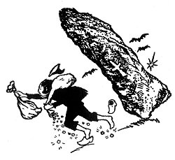 "Well," sniffed the ox, "didn't you know that once every hundred years, and the time is drawing near, for it is on this New Year's eve, a strange thing happens? The great rocks just outside the village leave their places and go down to the river to drink. Then it is that the treasures they guard beneath them are laid bare."