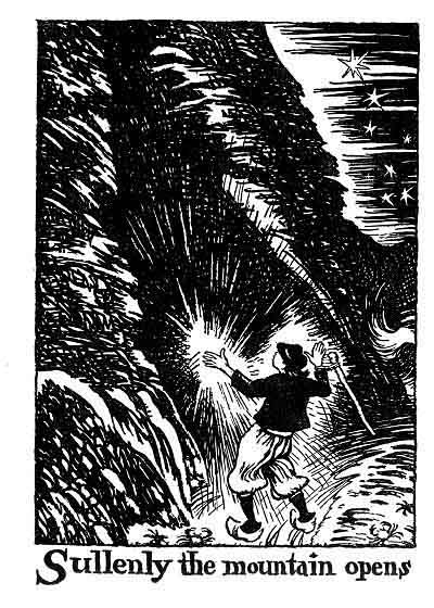 Périk, terrified, turned at last to flee, but it was too late. The mountain's jaws had closed once more; the hundred maidens had turned into a hundred statues of granite, and all was swallowed up in darkness.