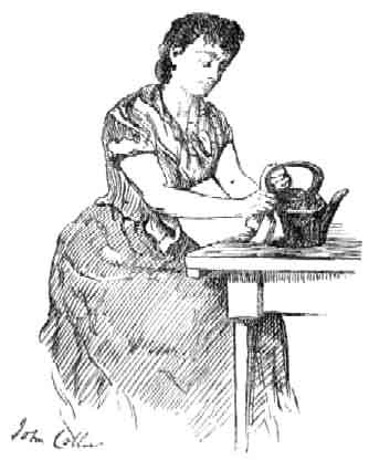 * The late Mr. Pope represents Camilla as "scouring the plain" an absurd and useless task. Peggy's occupation with the kettle is more simple and noble. The second line of this verse (wheref the author  scorns to deny an obligaion) is from the celebrated "Frithiof" of Esaias Tigner. A maiden is serving warriers to drink, and is standing by a sheld--"Und die Runde des Schildes ward wie das Magdalein roth"--perhaps the best thing in both poems.