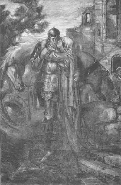 Morvan returned to his mother, who had been sitting some distance away, and began to tell her of his meeting. He was so full of the gallantry of the knight he had met, his grace and martial bearing, that the good dame