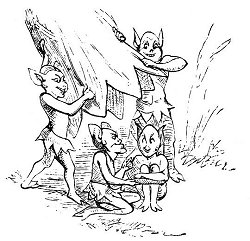 The pedlar was housed for the night, and every one in Ballasalla took especial care in placing the usual crock of cold water at each of their cottage doors before retiring to rest, for the fairies to drink, for fear any of the wee folk or bugganes belonging to the Enchanted Castle should be passing that way in the night, and, not finding the customary offering provided for them, wreak their vengeance on the unlucky defaulters.